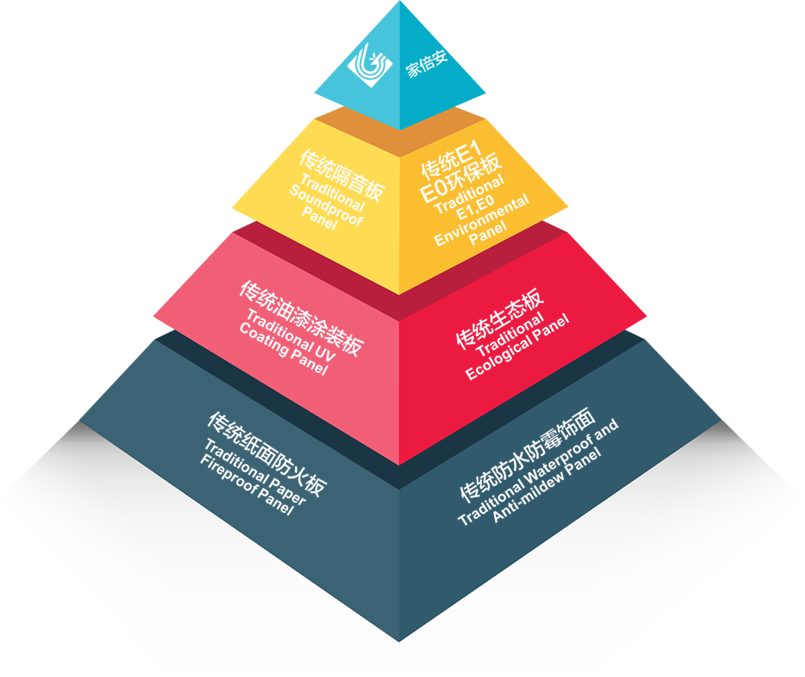 • “家倍安”使用高阻隔金屬鋁箔和高滲、超耐磨納米材料,經(jīng)過高溫高壓獨(dú)特的工藝方法處理,飾面木質(zhì)纖維結(jié)構(gòu)更加縝密,隔音、降噪,導(dǎo)熱系數(shù)低,防火等級(jí)高,達(dá)到國(guó)家防火材料防火標(biāo)準(zhǔn)A2級(jí)。